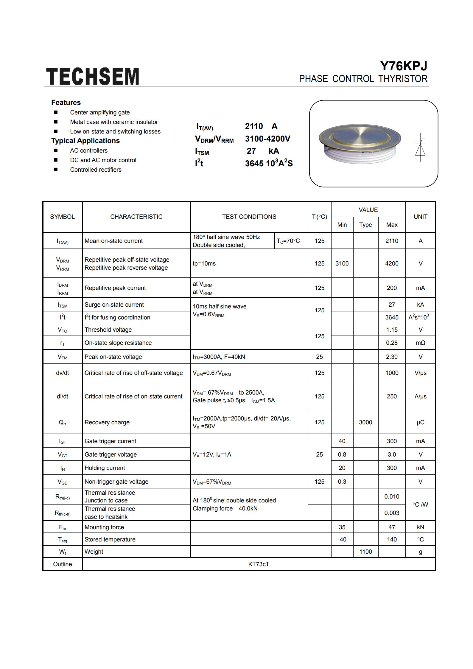 Y76KPJ-2500A-3200V水冷普通晶闸管