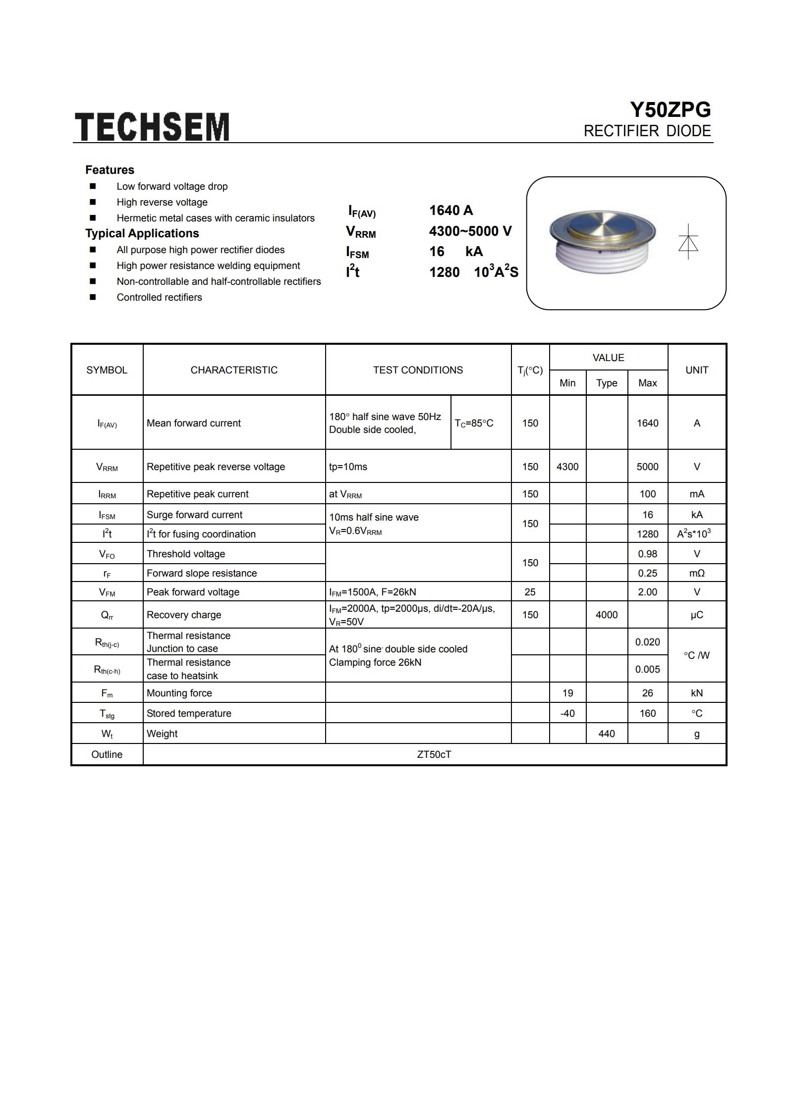 Y50ZPG-1000A-4600V整流二极管